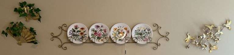 LOT 58 - Floral Decorative Plates & Hummingbird Decor