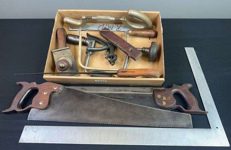 LOT 1937 - Square, Hand Saws, & Assorted Wood Working Tools