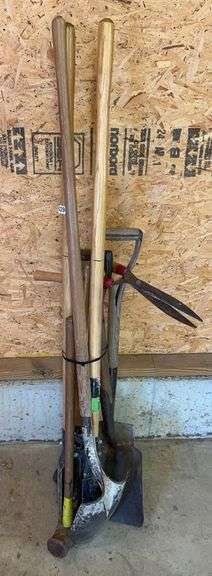 LOT 296 - Spade Shovel, Sledge Hammers, Post Hole Digger, & Misc.